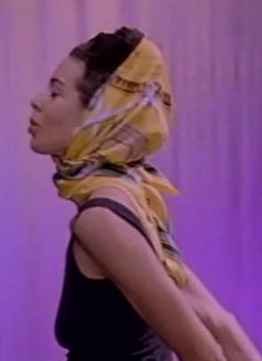 Six years later, in 1992, Whitney Houston would have her first headscarf scene at the end of the movie The Bodyguard. You can see the captures here and look at her beautiful Kelly wrap.