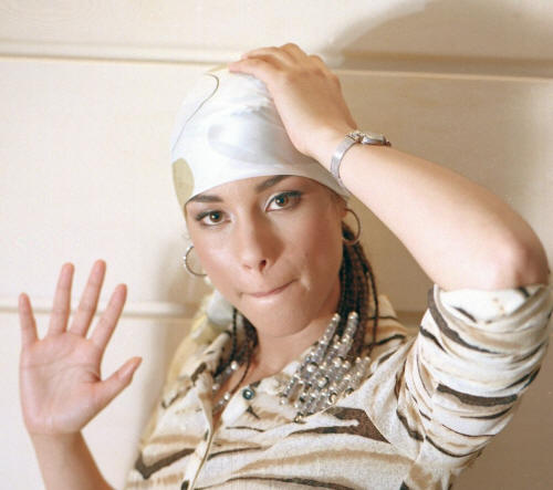 J.Lo wears headscarves quite often, Alanis much less. A pity, really, because she would look really good in a nice wrap.