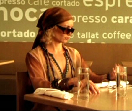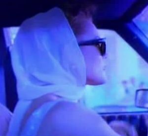 Belinda is shown driving around wearing a white headscarf Kelly style. Again,