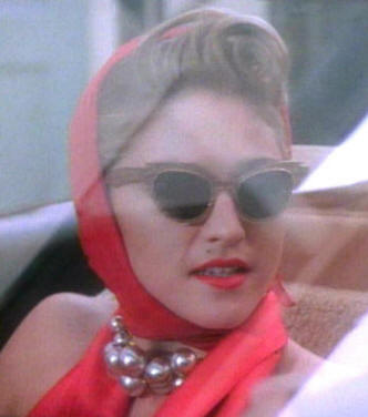 Right at the beginning we are treated to a short sequence of Madonna arriving at the studios in a convertible: she is dressed in typical diva attire, complete with sunglasses and headscarf. It's a very brief scene but it kind of sets the mood for the whole video.