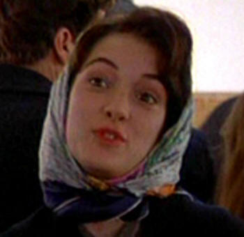In Great Balls of Fire Winona Ryder has her first ever headscarf scene, wearing a fabulous Kelly wrap in a nice, long scene with plenty of close-ups. While in my opinion one of the best movie headscarf scenes, it also features some of the most evident scarf-related bloopers. I'm still surprised that no movie blooper site has picked upon it yet.